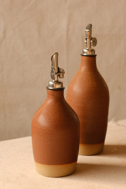These items are ready to ship so they are limited quantities. The most handy tool in the tool box is by far the oil bottle. It looks lovely on the counter while serving its purpose! Made from Texas stoneware.