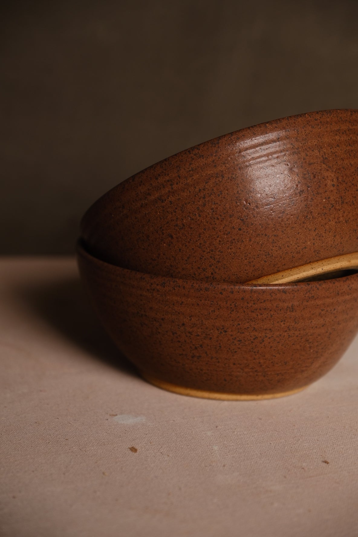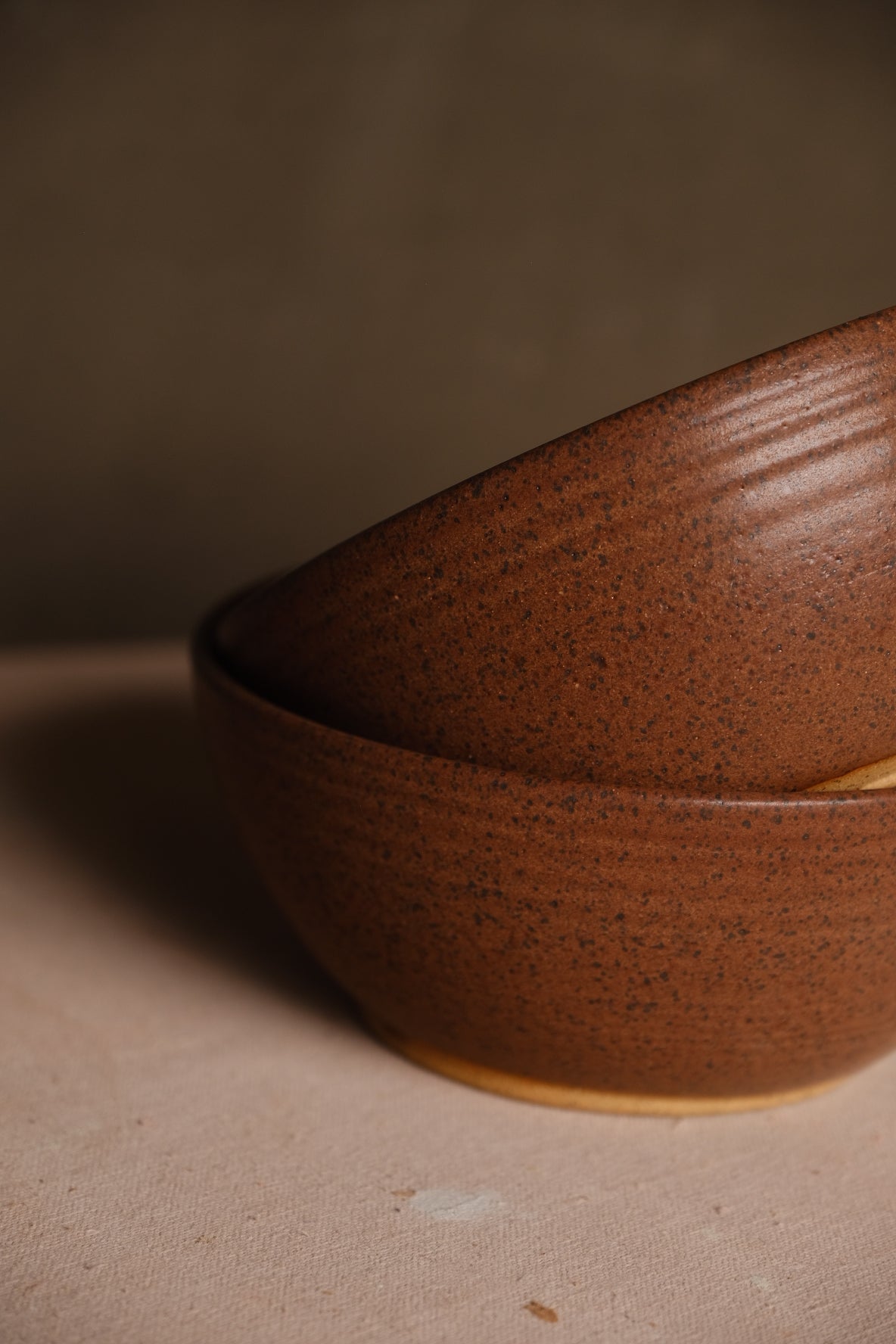 This bowl is large and ready for slurping. Thrown in speckled clay with a wide rim and pronounced foot, perfect for picking up and drinking the last bit of broth. Ready to ship. Sold individually.